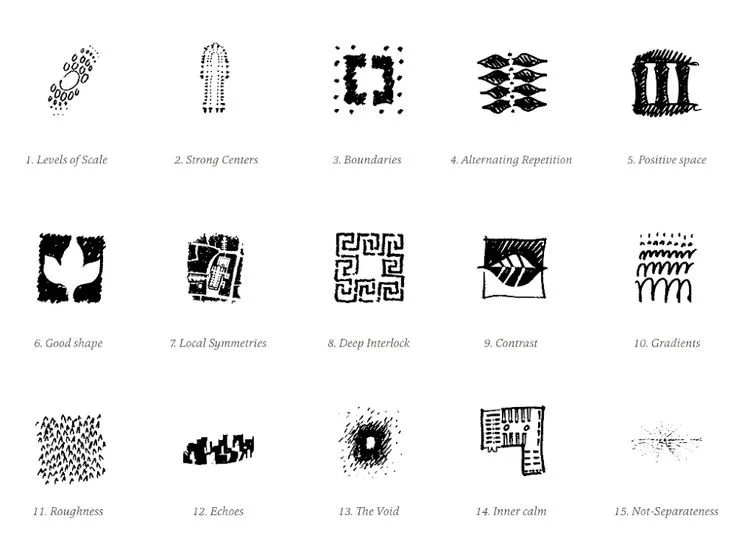 Figure 1. “Fifteen Fundamental Properties” from Christopher Alexander, The Nature of Order, Book 1: The Phenomenon of Life (Center for Environmental Structure, 2002)
